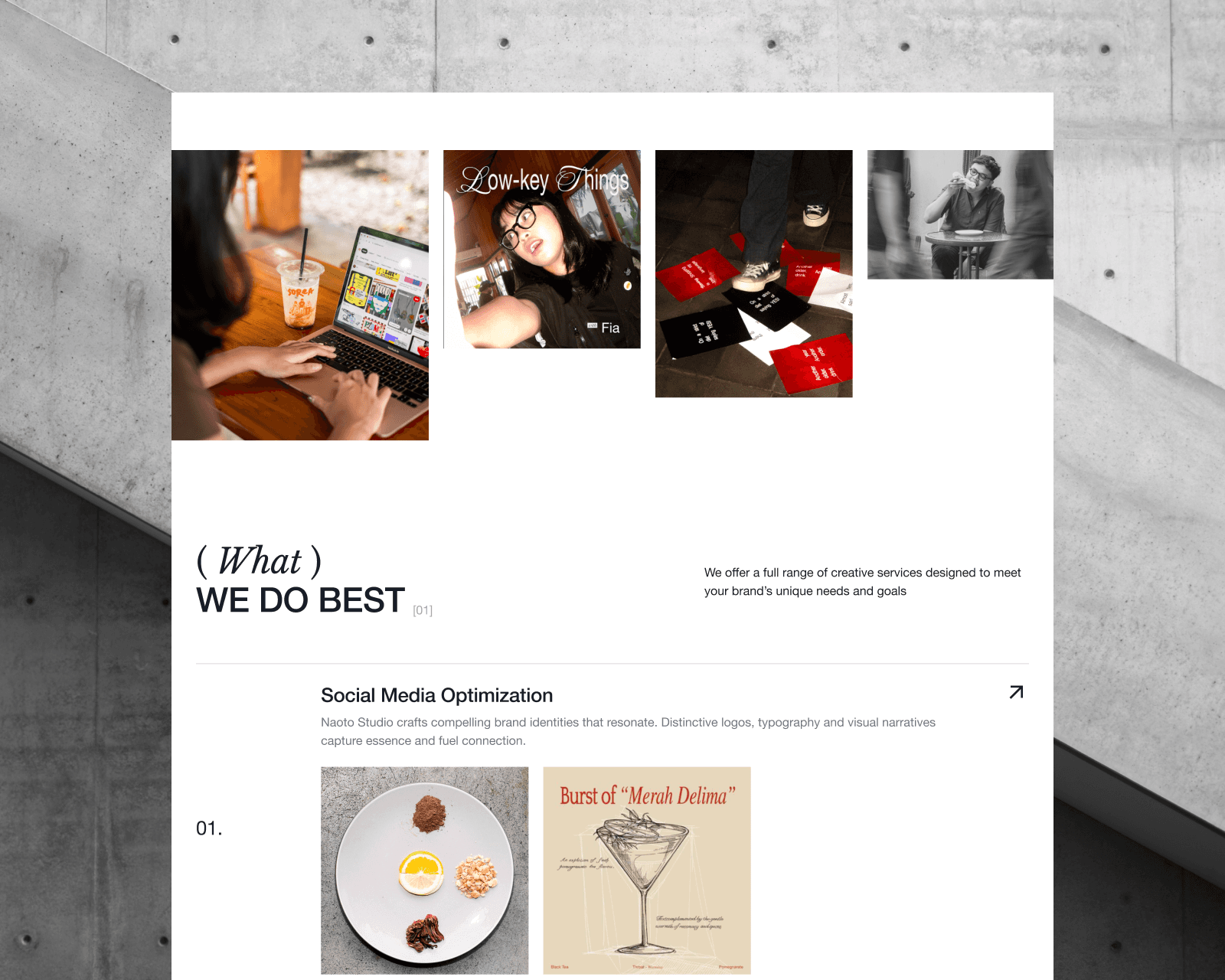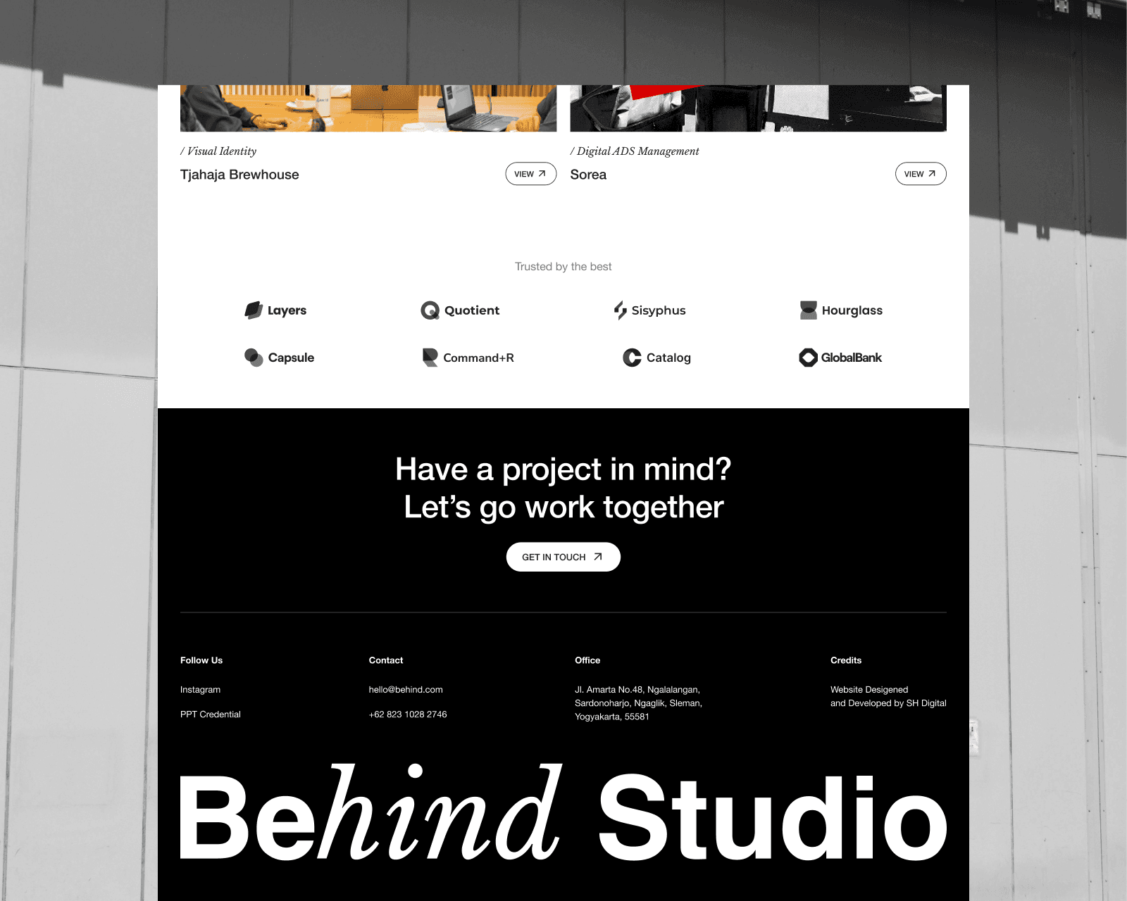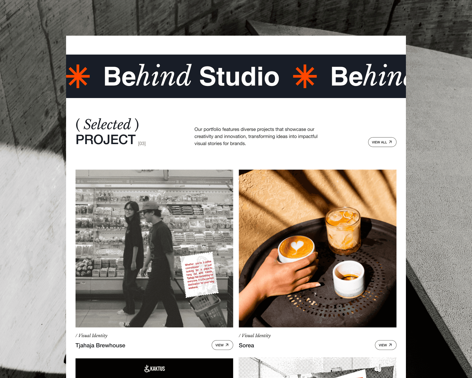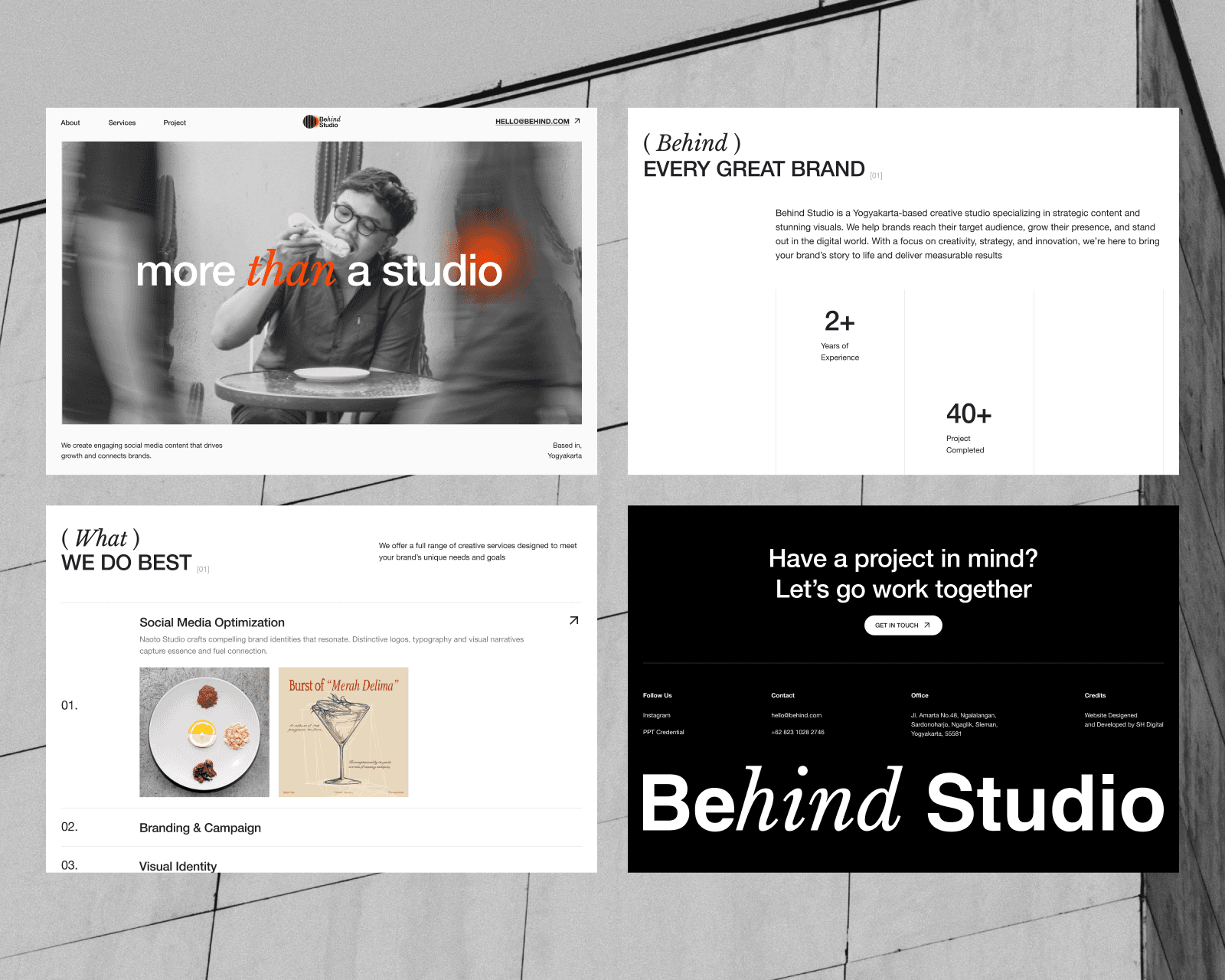 A real project—an agency profile website for Behind Studio. This website introduces the agency’s services and showcases its portfolio.