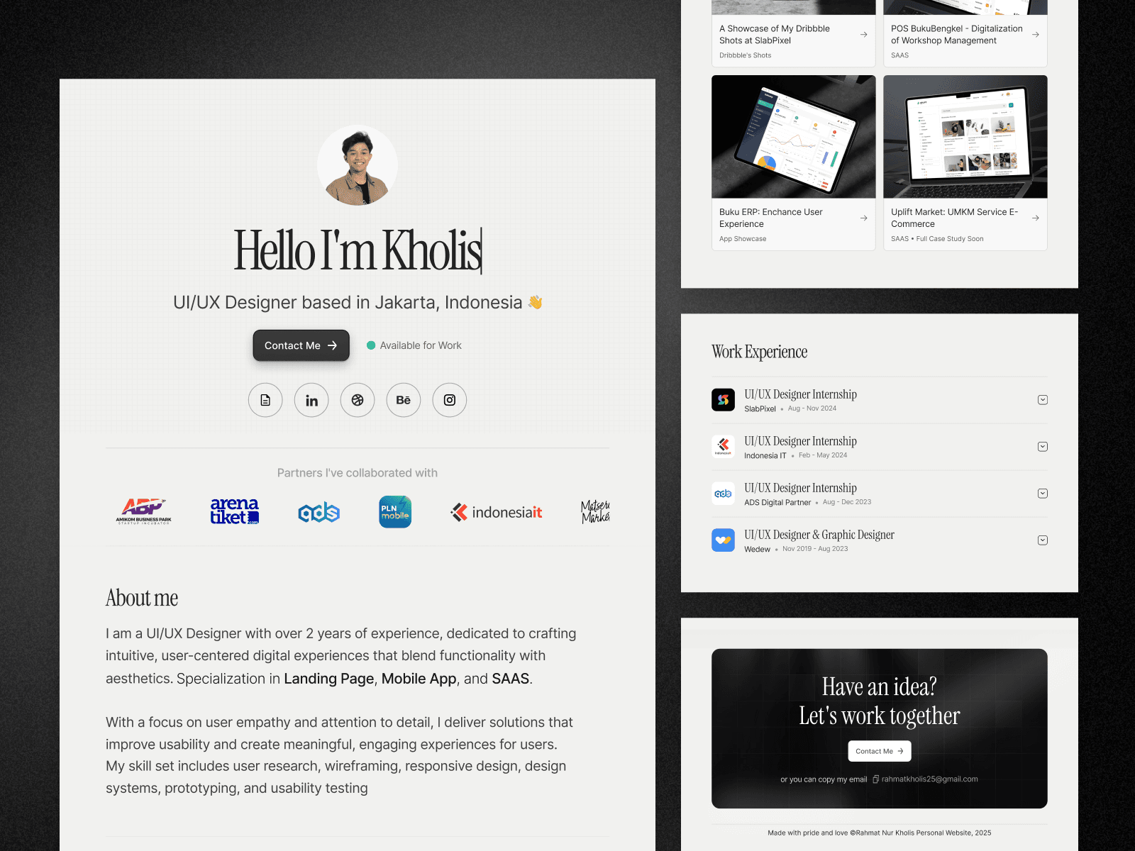 At the end of 2024, I set a goal to enhance my design and development skills, particularly in Framer. I wanted to challenge myself not only to create visually appealing interfaces but also to develop them into fully functional web designs. Currently, I am also working towards becoming a Contributor to Framer Templates with my friends.